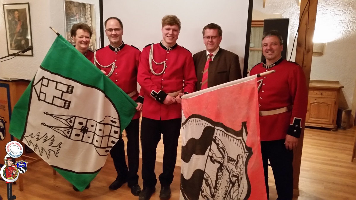 In der Jahreshauptversammlung des Spielmanns- und Fanfarenzuges Beyharting konnte den zahlreichen Mitgliedern und Besuchern, darunter Bürgermeister Georg Weigl, die neue Schwingfahne präsentiert werden, welche in Zukunft die Gemeinde Tuntenhausen in ganz Bayern und darüber hinaus repräsentieren wird.